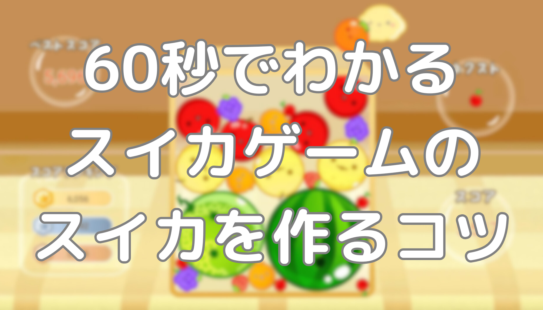 ゲーム攻略60秒でわかるスイカゲームのスイカを作るコツ 動画でもご覧いただけます↓ スイカゲームで高得点を目指すためには、いくつかのコツがあります。これらのコツを押さえて、ゲームを楽しんでみましょう。 序盤は順番に並べる ゲームの序盤では、フルーツを大きさの順に並べ、大きいフルーツを端に配置する...ゲーム攻略